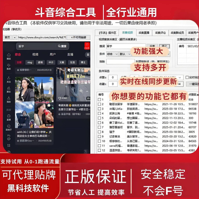 抖音引流工具 全自动采集评论用户+私信+直播间互动+AI文案生成 支持无限多开独立IP防封 正版卡密永久更新