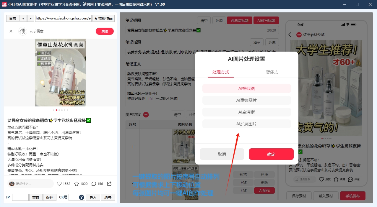 小红书AI图文创作发布工具丨100%过检测AI处理图片+笔记一键生成丨电脑创作手机扫码发布权重更高